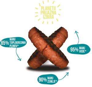 95 % manj vode, 90 % manj zemlje in proizvedemo 85 % manj toplogrednih plinov, kot za proizvodnjo govejega in piščančjega mesa.